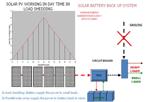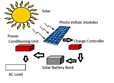 The DC electricity generated by the Solar Panels can be stored in Batteries for later use. These are normally Deep Discharge Lead Acid batteries. New generation batteries with long life and negligible maintenance are now available. Utility Grid: