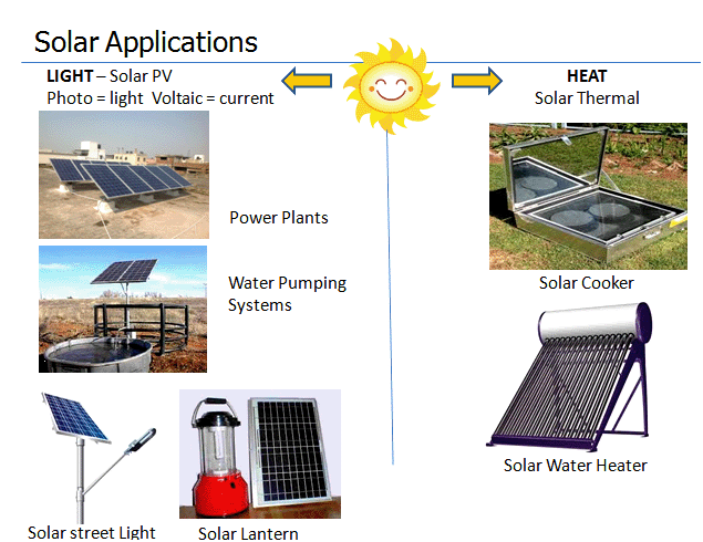| What are the possible applications of Solar Energy? |